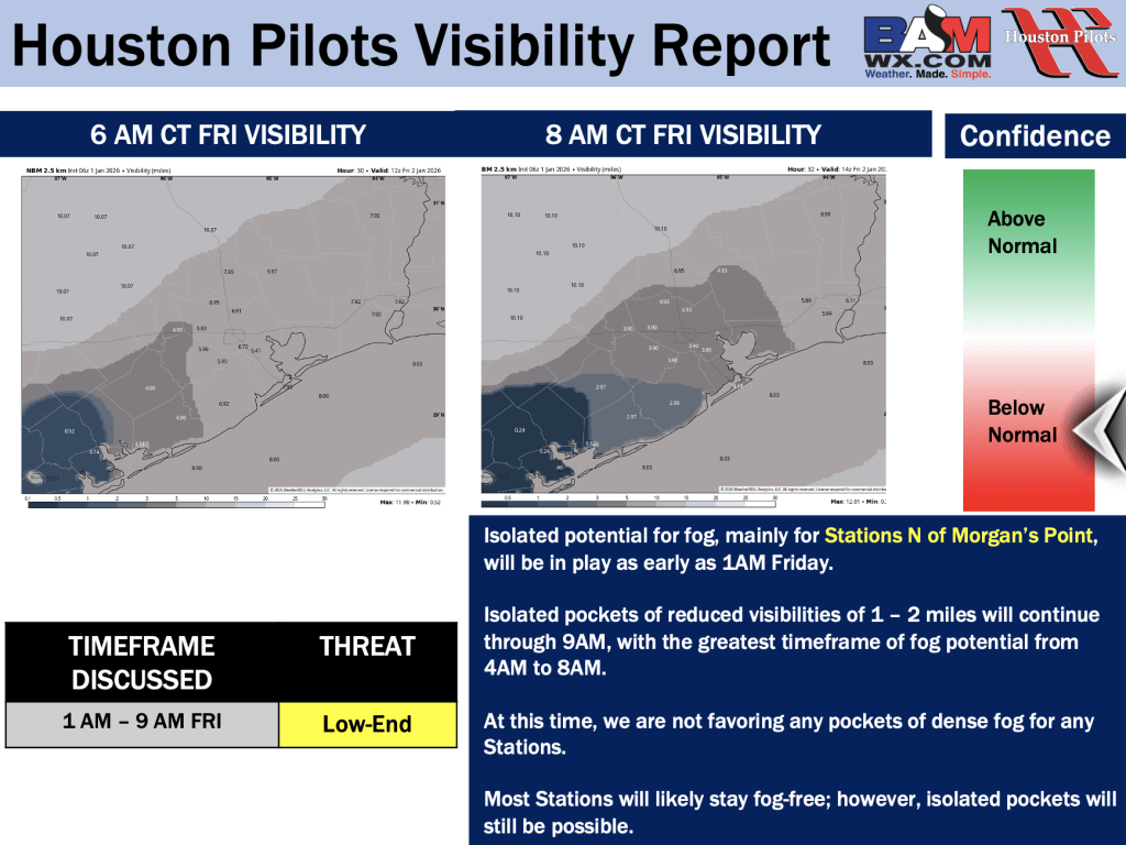 Good Thursday AM and Happy New Year! Here is your latest Houston Pilots Forecast Package! If you have any forecast questions, please do not hesitate to reach out via our on call phone number (317)-560-8122, option 1.