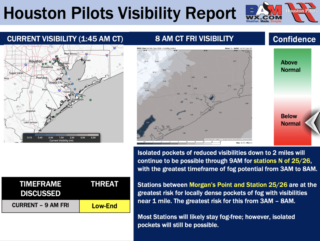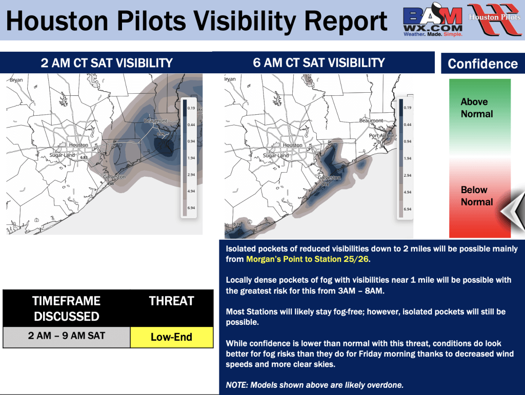 Good Friday AM! Here is your latest Houston Pilots Forecast Package/Visibility Update! If you have any forecast questions, please do not hesitate to reach out via our on call phone number (317)-560-8122, option 1.
