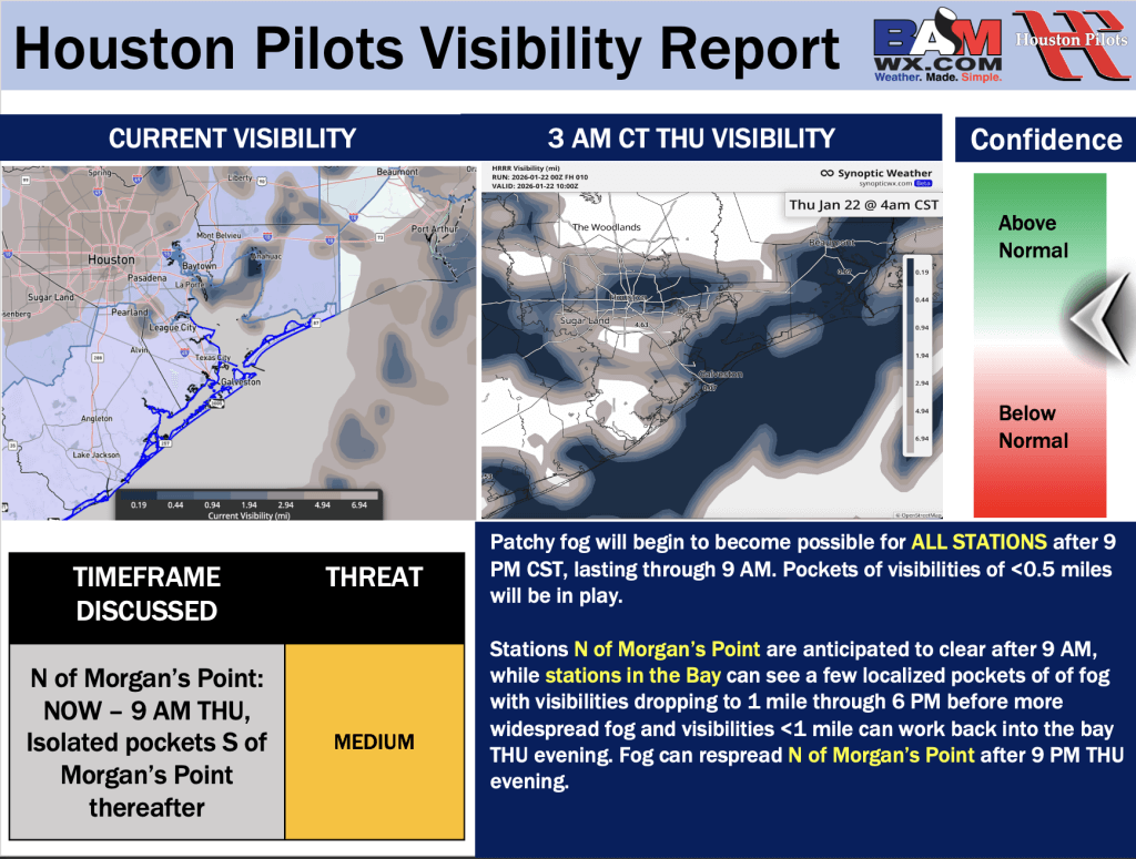 Good Wednesday PM! Here is your latest Houston Pilots Visibility Update! If you have any forecast questions, please do not hesitate to reach out via our on call phone number (317)-560-8122, option 1.
