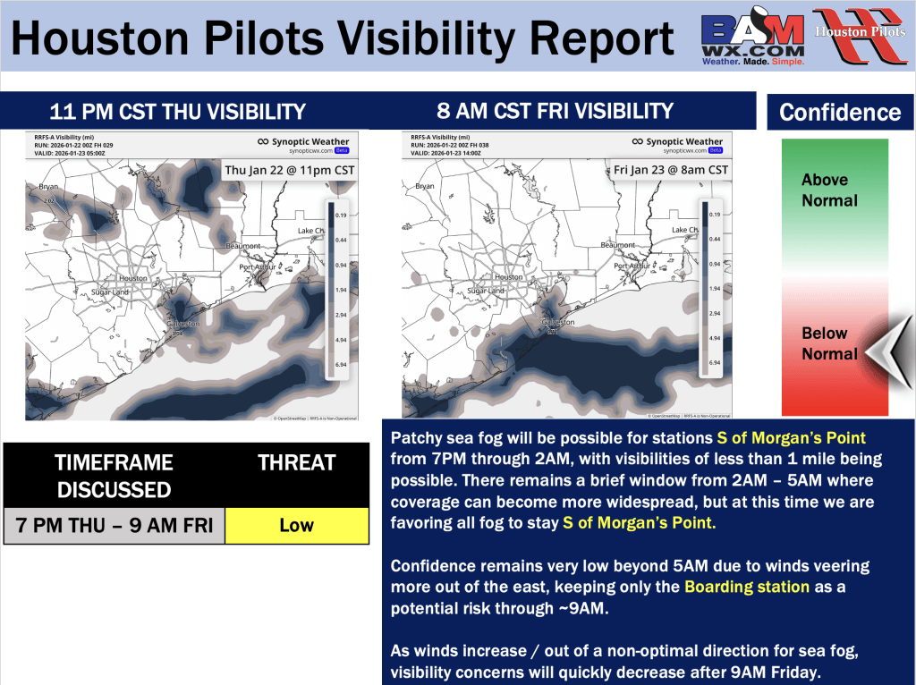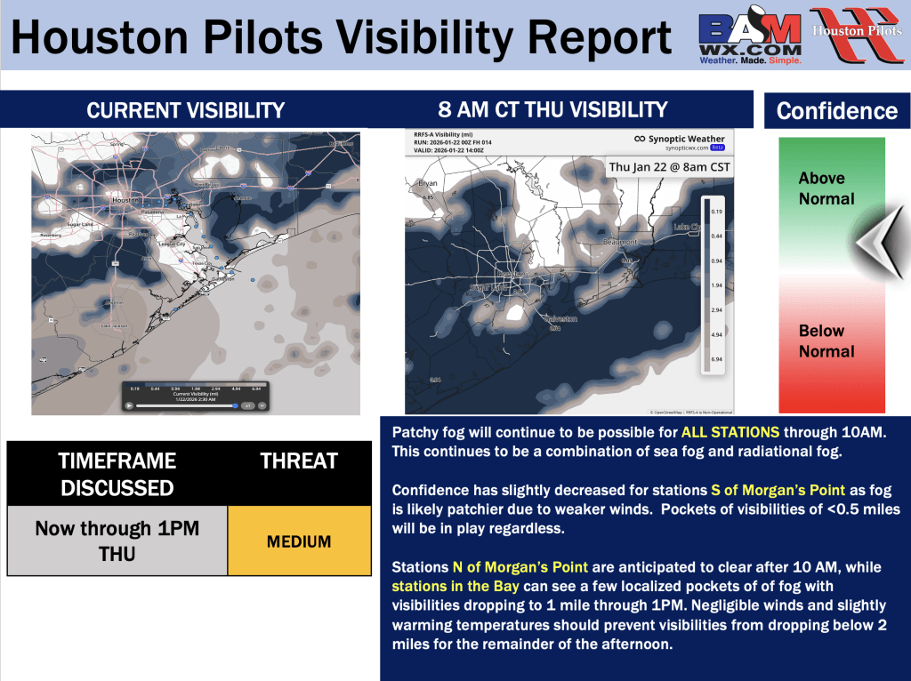 Good Thursday AM! Here is your latest Houston Pilots Forecast Package and Visibility Update! If you have any forecast questions, please do not hesitate to reach out via our on call phone number (317)-560-8122, option 1.