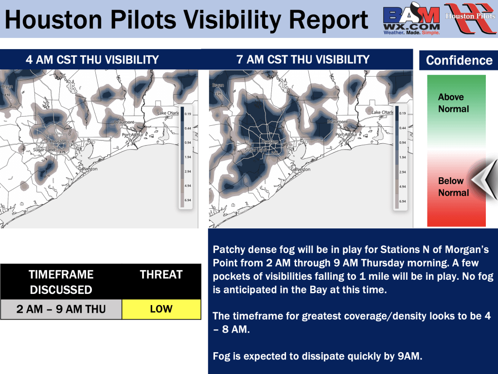 Good Wednesday PM! Here is your latest Houston Pilots Visibility Update! If you have any forecast questions, please do not hesitate to reach out via our on call phone number (317)-560-8122, option 1.