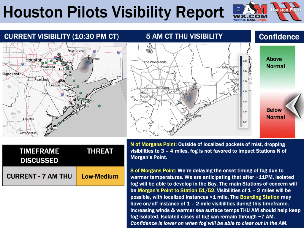 Good Wednesday PM! Here is your latest Houston Pilots Visibility Update! If you have any forecast questions, please do not hesitate to reach out via our on call phone number (317)-560-8122, option 1.
