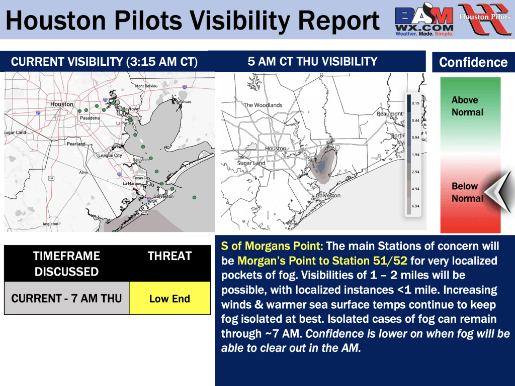 Good Thursday AM! Here is your latest Houston Pilots Forecast Package/Visibility Update! If you have any forecast questions, please do not hesitate to reach out via our on call phone number (317)-560-8122, option 1.