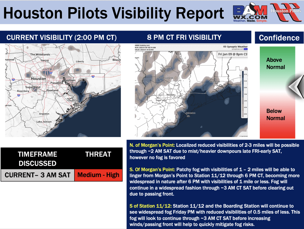 Good Friday PM! Here is your latest Houston Pilots Forecast Package/ Visibility Update! If you have any forecast questions, please do not hesitate to reach out via our on call phone number (317)-560-8122, option 1.
