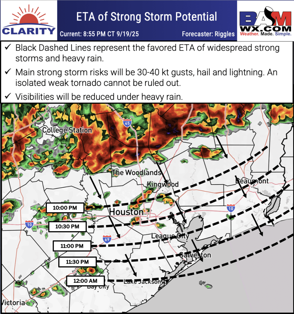 Good Sunday AM! Here is your latest Houston Pilots forecast package! Your latest Nowcast update is also attached below. Main risks with approaching storms will be 30-40 kt gusts, hail and lightning. If you have any forecast questions, please do not hesitate to reach out via our on call phone number (317)-560-8122, option 1.