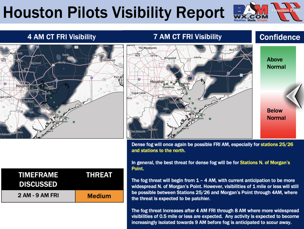 Good Friday AM! Here is your latest Houston Pilots Forecast Package/Visibility Update! If you have any forecast questions, please do not hesitate to reach out via our on call phone number (317)-560-8122, option 1.
