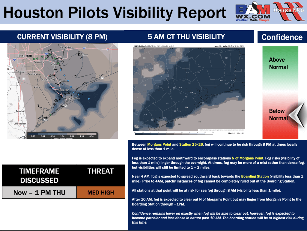 Good Wednesday PM! Here is your latest Houston Pilots Visibility Update! If you have any forecast questions, please do not hesitate to reach out via our on call phone number (317)-560-8122, option 1.