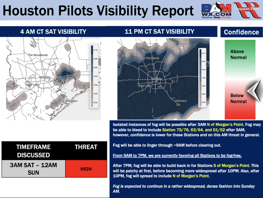 Good Friday AM! Here is your latest Houston Pilots Forecast Package/Visibility Update! If you have any forecast questions, please do not hesitate to reach out via our on call phone number (317)-560-8122, option 1.