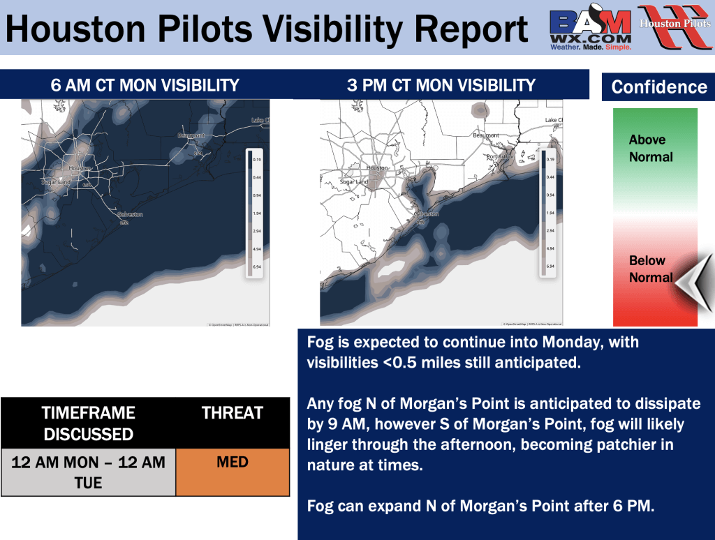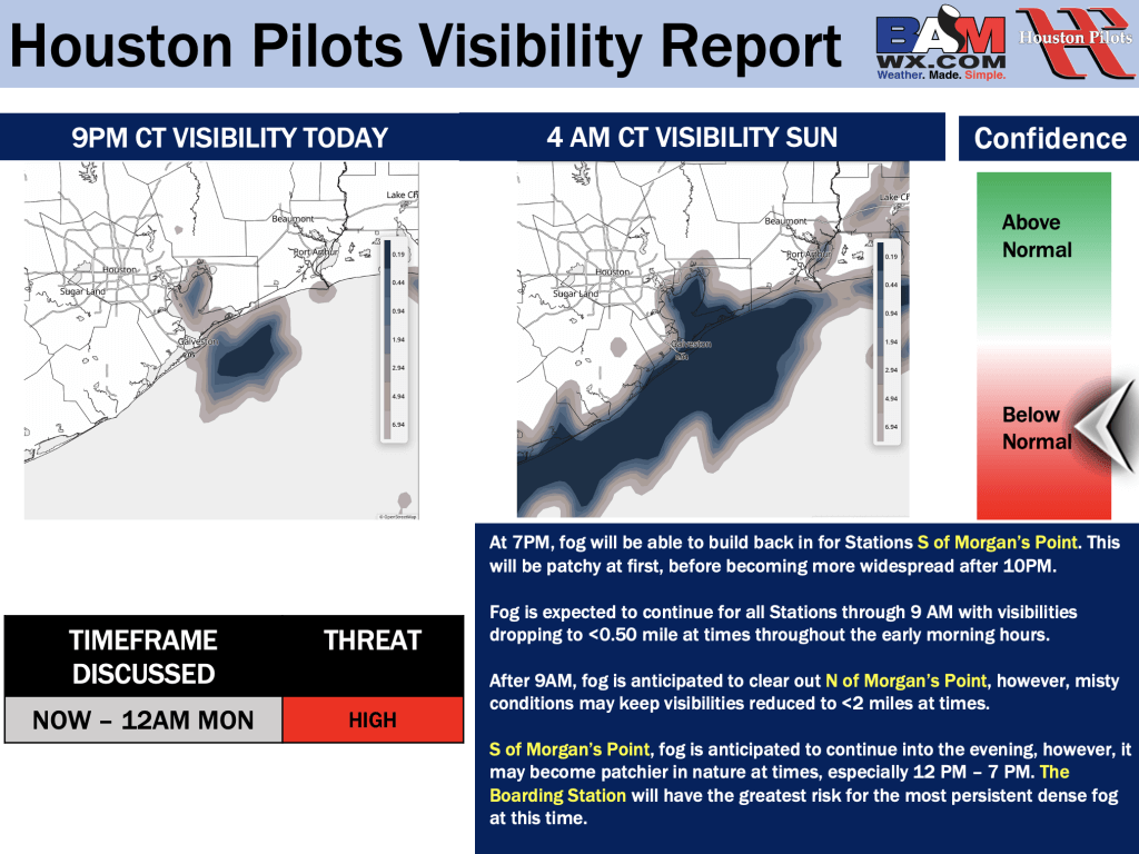Good Saturday PM! Here is your latest Houston Pilots Forecast Package/Visibility Update! If you have any forecast questions, please do not hesitate to reach out via our on call phone number (317)-560-8122, option 1.