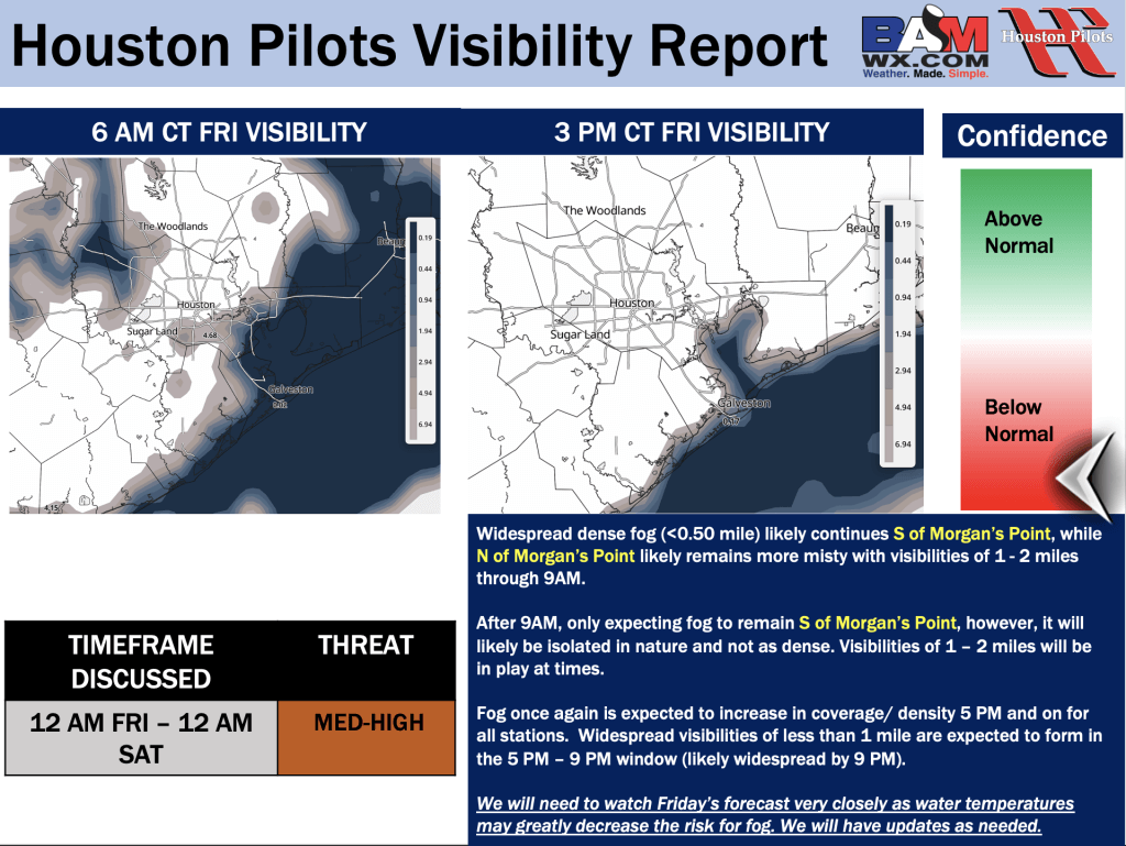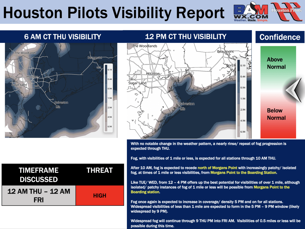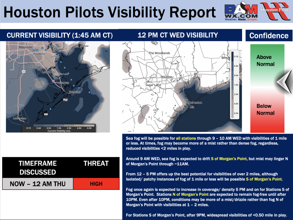 Good Wednesday AM! Here is your latest Houston Pilots Forecast Package/Visibility Update! If you have any forecast questions, please do not hesitate to reach out via our on call phone number (317)-560-8122, option 1.