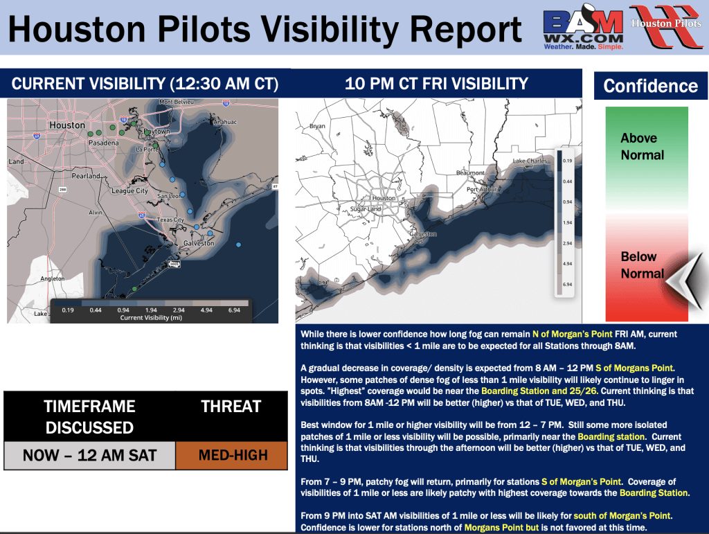 Good Friday AM! Here is your latest Houston Pilots Forecast Package and Visibility Update! If you have any forecast questions, please do not hesitate to reach out via our on call phone number (317)-560-8122, option 1.