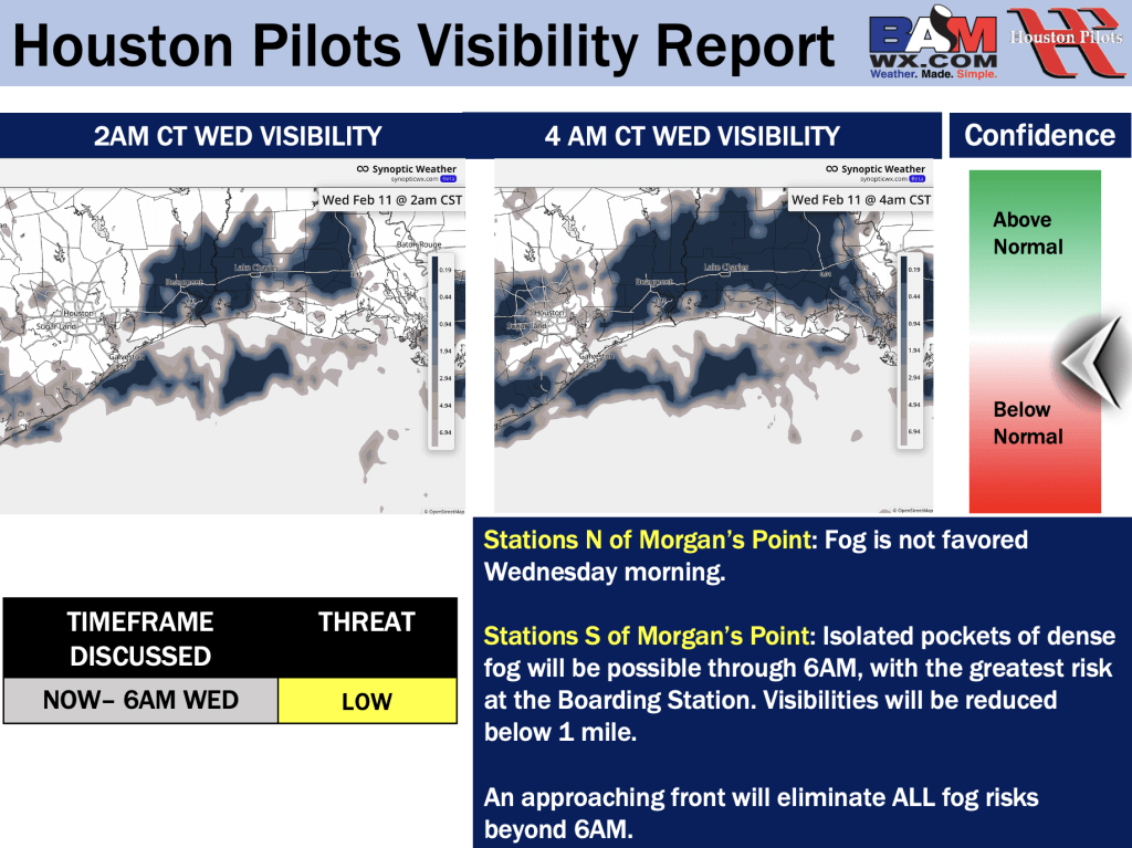 Good Wednesday AM! Here is your latest Houston Pilots Forecast Package/Visibility Update! If you have any forecast questions, please do not hesitate to reach out via our on call phone number (317)-560-8122, option 1.