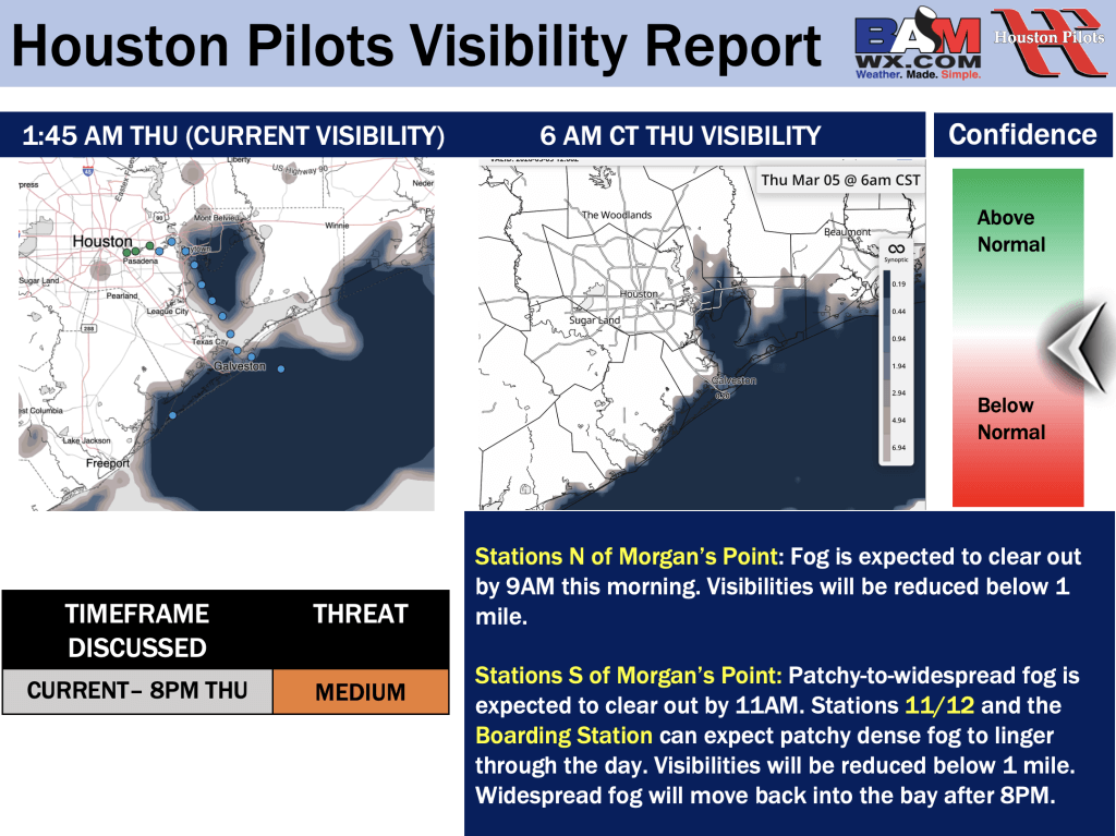 Good Thursday AM! Here is your latest Houston Pilots Forecast Package/Visibility Update! If you have any forecast questions, please do not hesitate to reach out via our on call phone number (317)-560-8122, option 1.