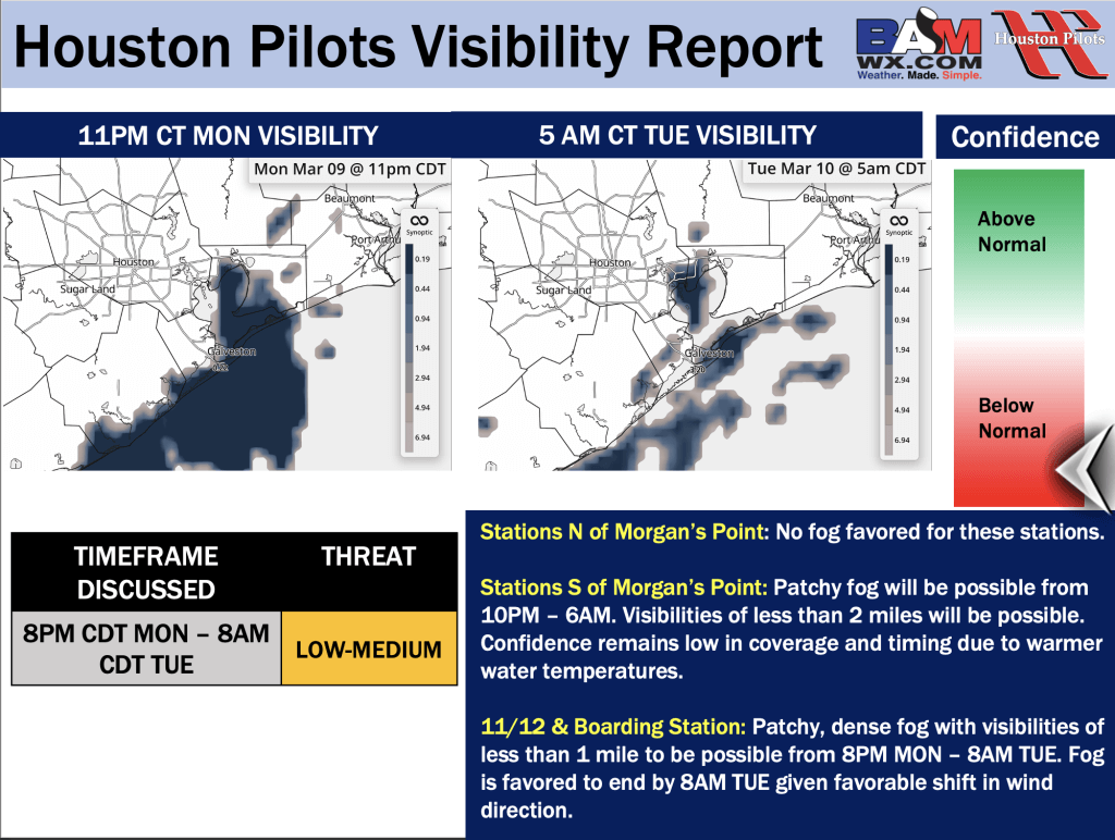 Good Monday AM! Here is your latest Houston Pilots Forecast Package/Visibility Update! If you have any forecast questions, please do not hesitate to reach out via our on call phone number (317)-560-8122, option 1.