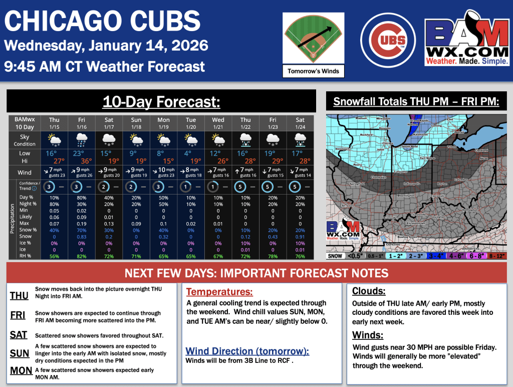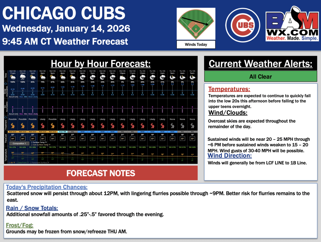 1-14-26 Chicago Cubs Forecast.S. By Samantha LangOn January 14, 2026 Good morning! Here is your latest Chicago Cubs Forecast. PDF: Chicago Cubs