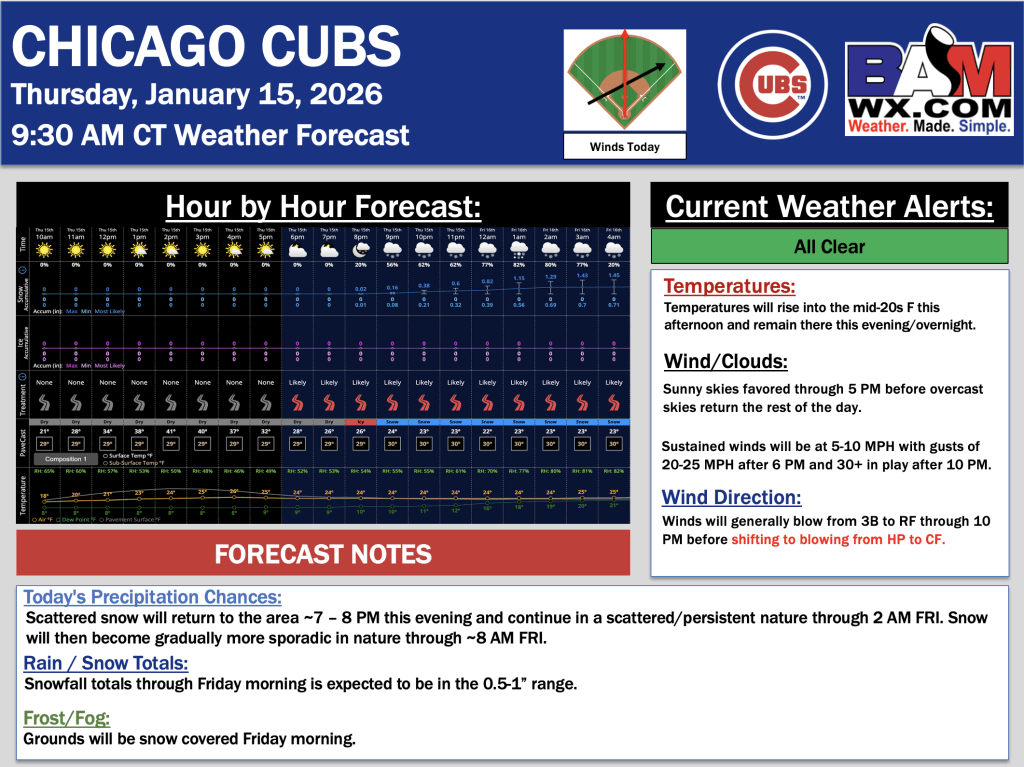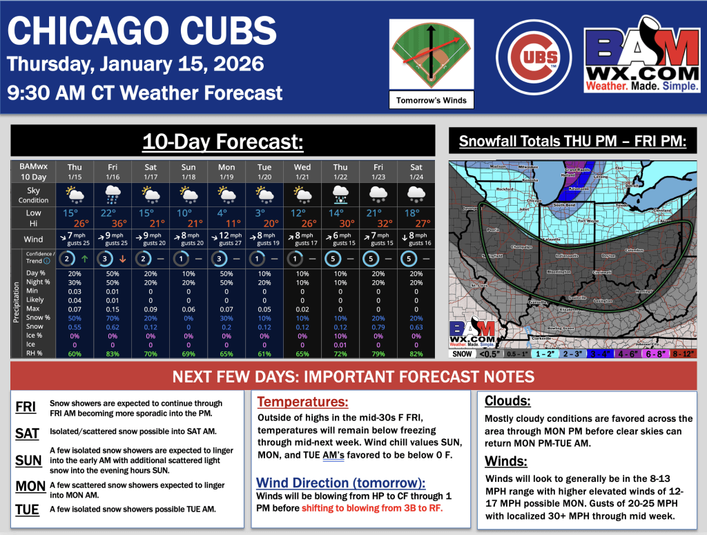 1-15-26 Chicago Cubs Forecast.JK. By Matt GriffinOn January 15, 2026 Good morning! Here is your latest Chicago Cubs Forecast. PDF: Chicago Cubs