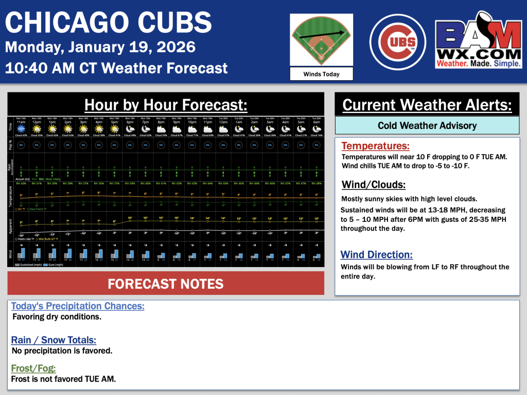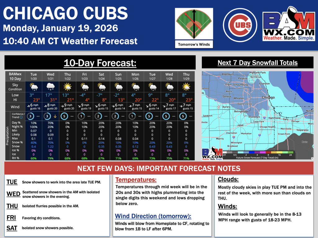 1-19-25 Chicago Cubs Forecast Update.H. By Hope KleitschOn January 19, 2026 Good morning! Here is your latest Chicago Cubs forecast update. Please reach out with any questions! PDF: Chicago Cubs