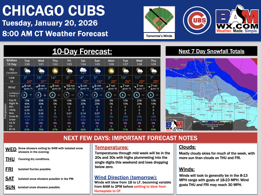 1-20-26 Chicago Cubs Forecast Update.H. By Hope KleitschOn January 20, 2026 Good morning! Here is your latest Chicago Cubs forecast update. Please reach out with any questions! PDF: Chicago Cubs