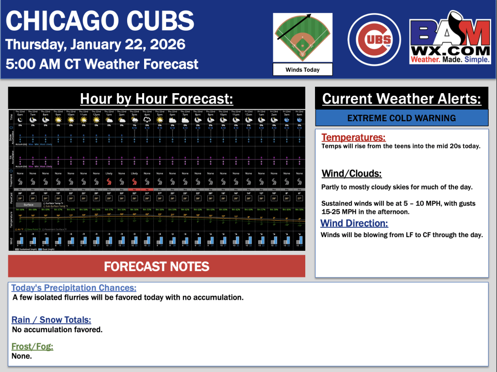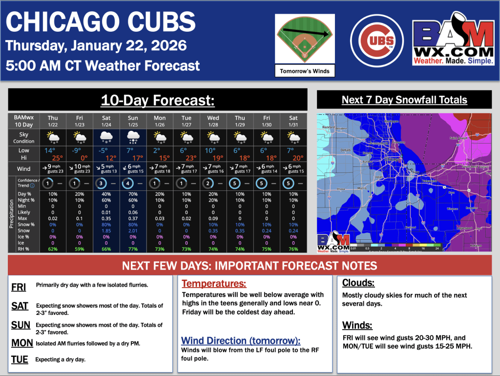 1-22-26 Chicago Cubs Forecast.V. By Vince BryanOn January 22, 2026 Good morning! Here is your latest Chicago Cubs forecast update. Please reach out with any questions! PDF: Chicago Cubs