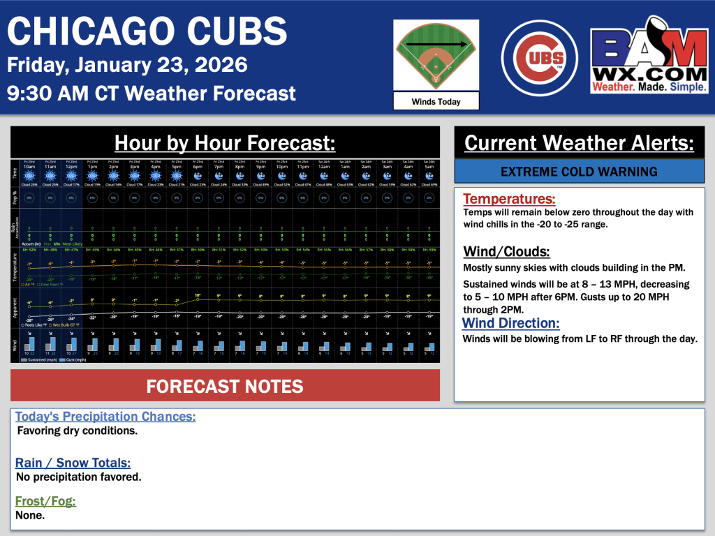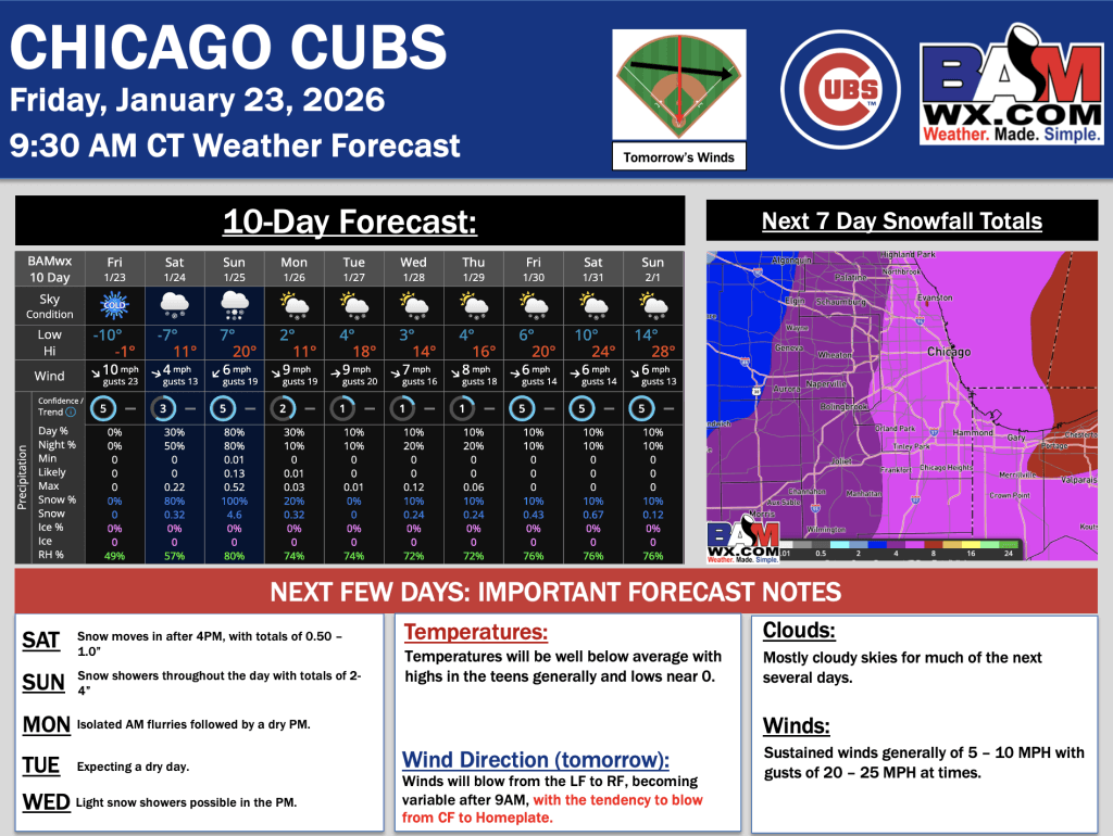 1-23-26 Chicago Cubs Forecast Update.H. By Hope KleitschOn January 23, 2026 Good morning! Here is your latest Chicago Cubs forecast update. Please reach out with any questions! PDF: Chicago Cubs