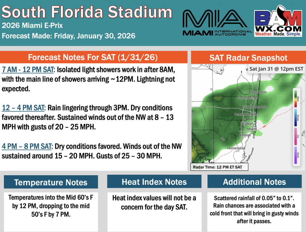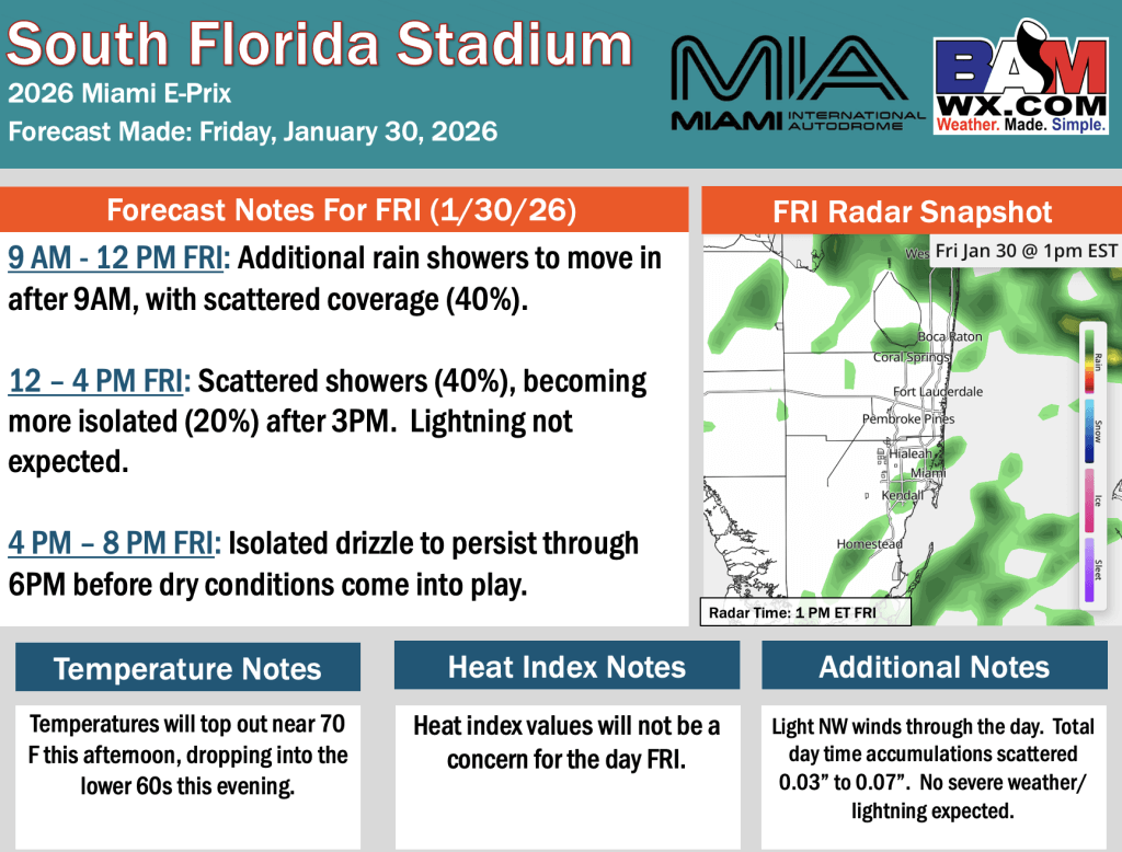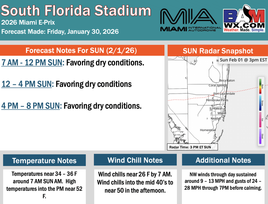 1-30-26 Miami E-Prix Forecast Update.H. By Hope KleitschOn January 30, 2026 Good morning! Here is your latest Miami E-Prix Forecast Update. PDF: Miami Formula E Prix Forecast