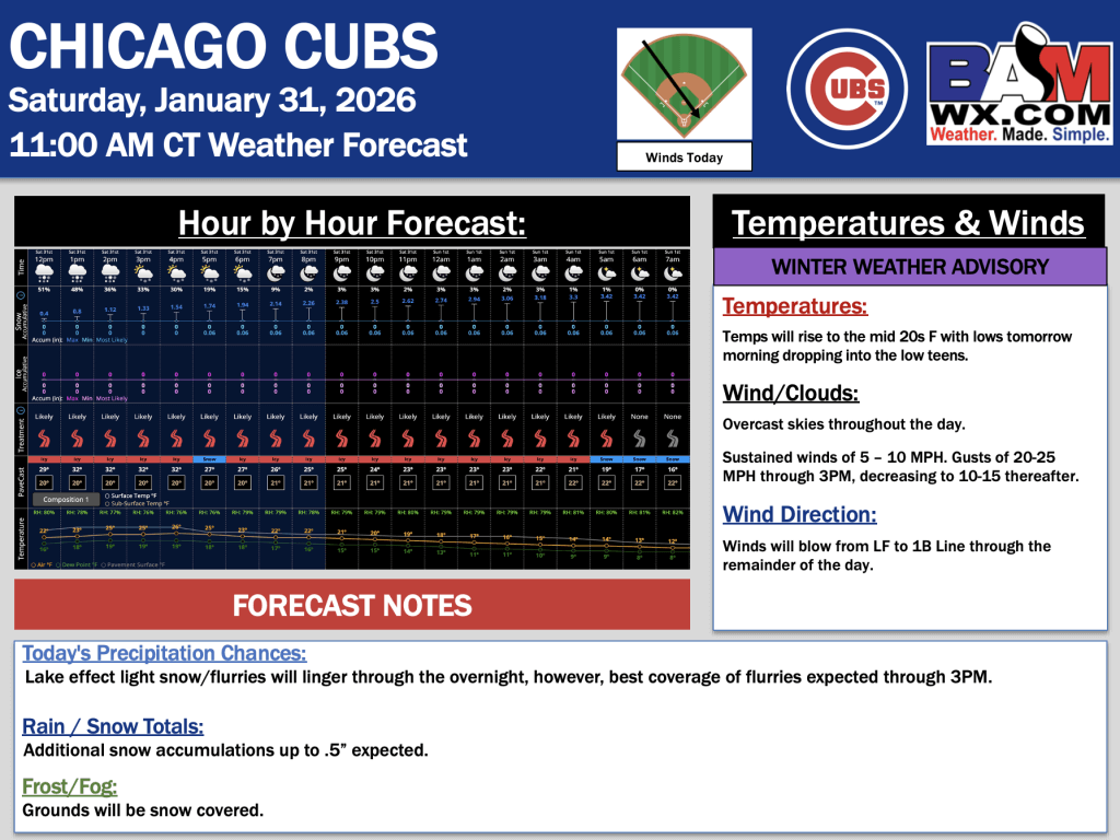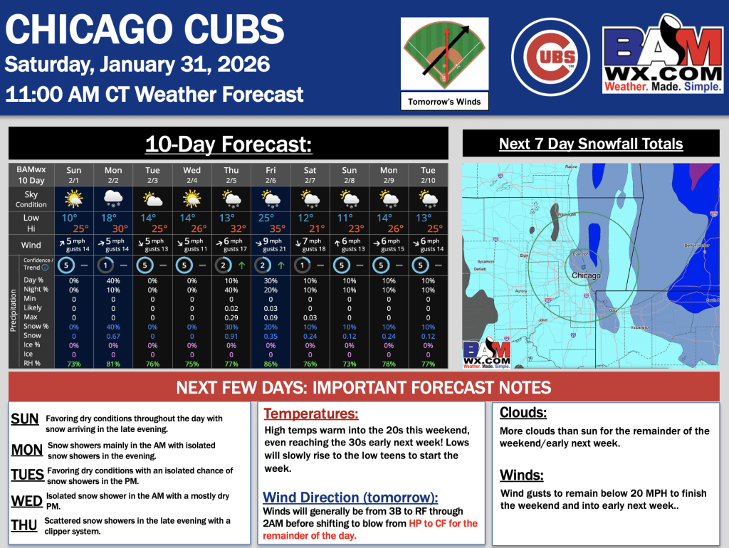 1-31-26 Chicago Cubs Forecast Update.S. By Samantha LangOn January 31, 2026 Good morning! Here is your latest Chicago Cubs forecast update. Please reach out with any questions! PDF: Chicago Cubs