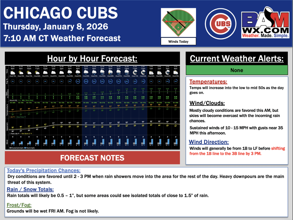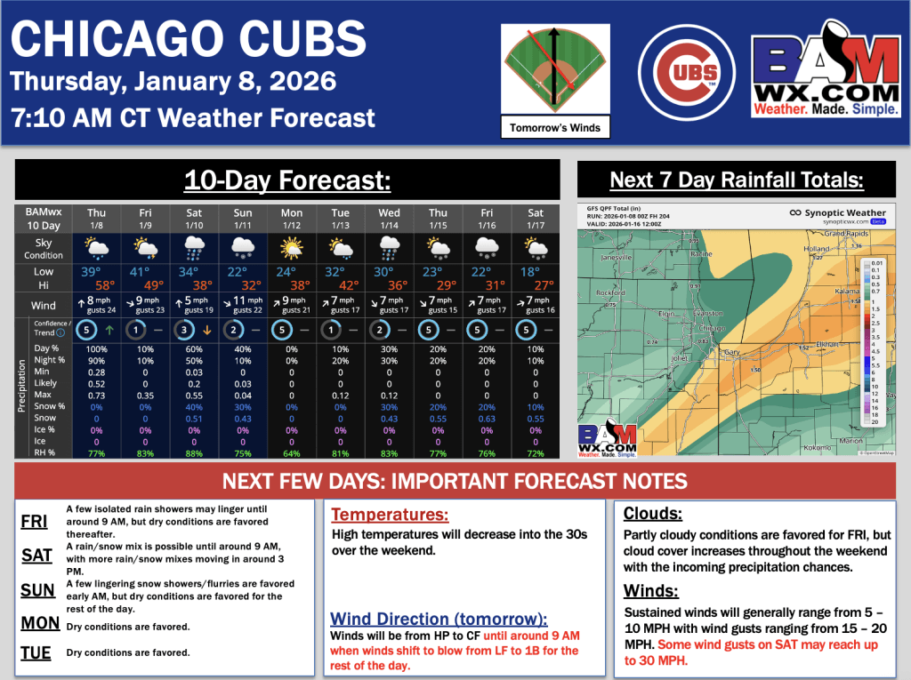 1-8-25 Chicago Cubs Forecast.L. By Lydia PurleeOn January 8, 2026 Good morning! Here is your latest Chicago Cubs Forecast. PDF: Chicago Cubs