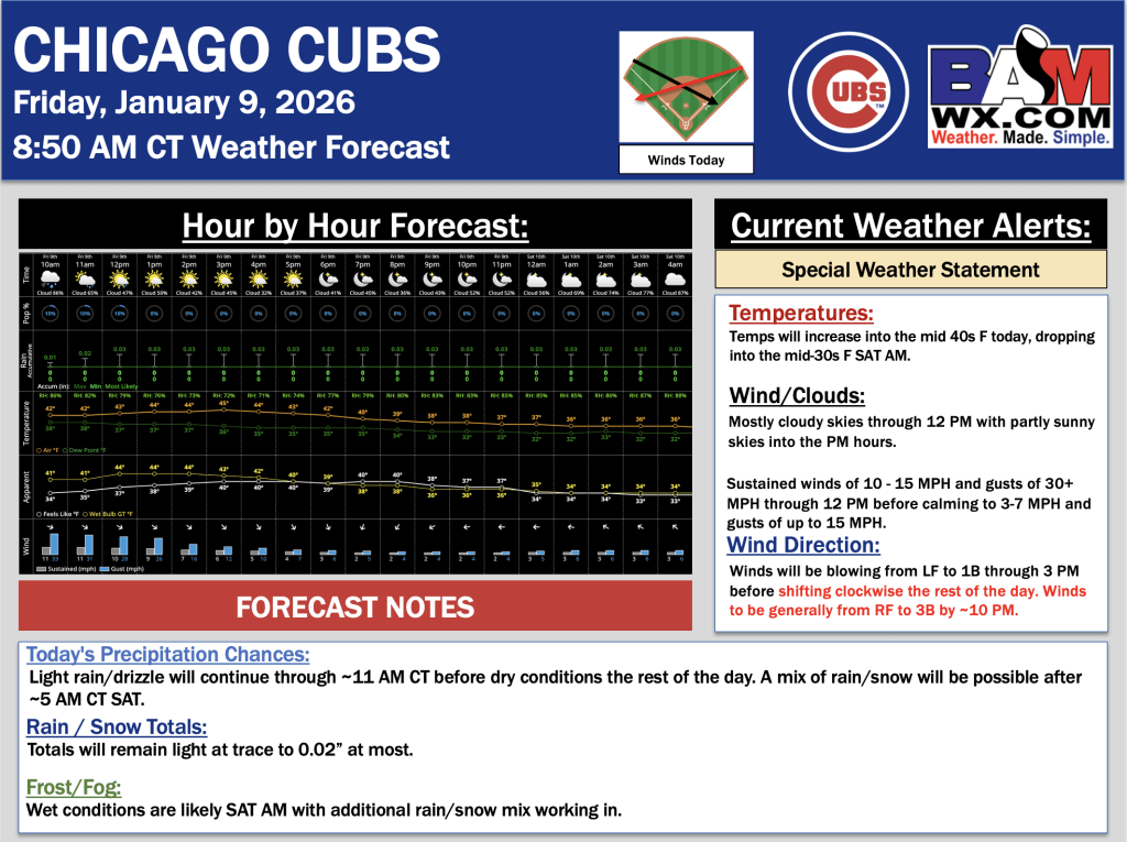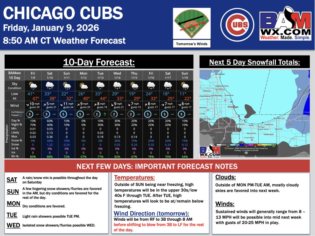 1-9-25 Chicago Cubs Forecast.JK. By Matt GriffinOn January 9, 2026 Good morning! Here is your latest Chicago Cubs Forecast. PDF: Chicago Cubs