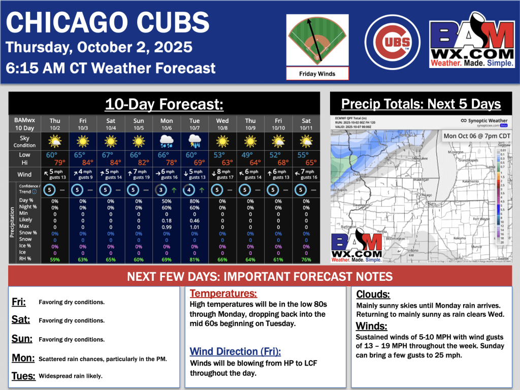 10-02-25 Chicago Cubs Forecast Update.NB. By Noah BeganOn October 2, 2025 Good morning! Here is your latest Chicago Cubs forecast update. Please reach out with any questions! PDF: Chicago Cubs