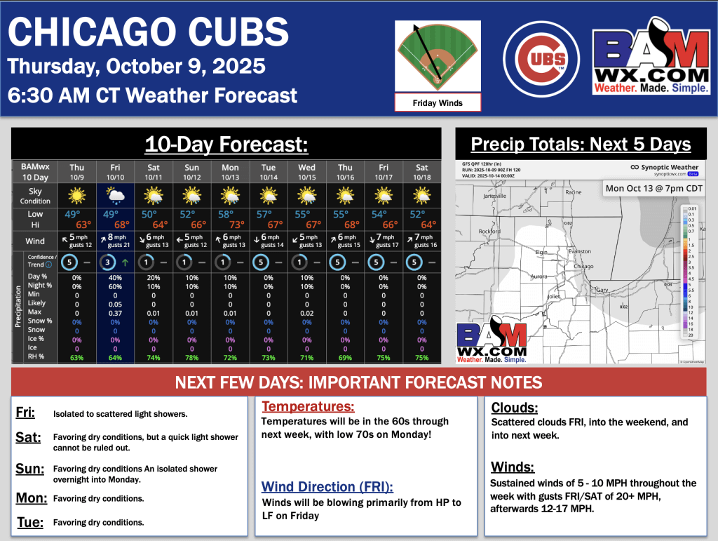 10-09-25 Chicago Cubs Forecast Update.NB. By Noah BeganOn October 9, 2025 Good morning! Here is your latest Chicago Cubs forecast update. Please reach out with any questions! PDF: Chicago Cubs