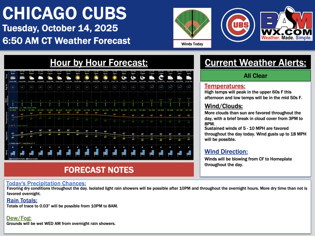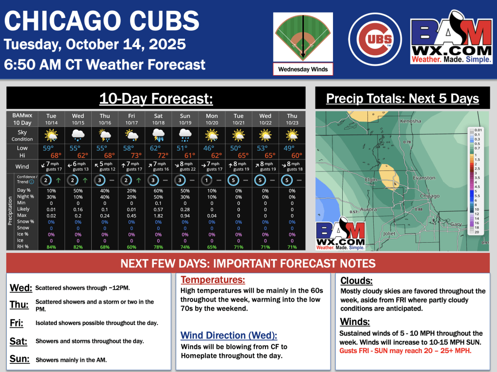 10-14-25 Chicago Cubs Forecast Update.H. By Hope KleitschOn October 14, 2025 Good morning! Here is your latest Chicago Cubs forecast update. Please reach out with any questions! PDF: Chicago Cubs