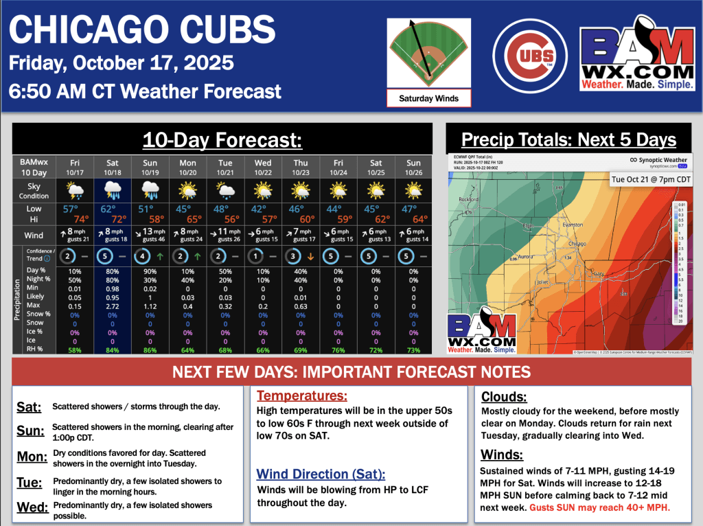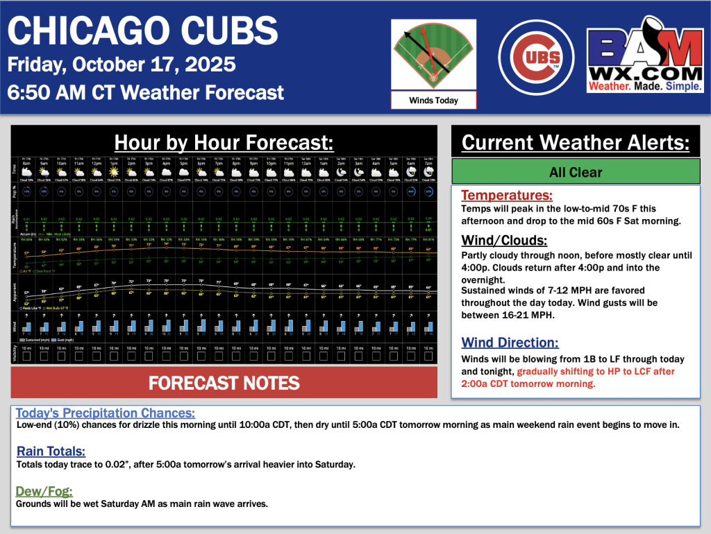 10-17-25 Chicago Cubs Forecast Update.NB. By Noah BeganOn October 17, 2025 Good morning! Here is your latest Chicago Cubs forecast update. Please reach out with any questions! PDF: Chicago Cubs