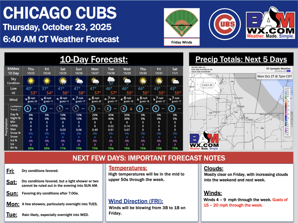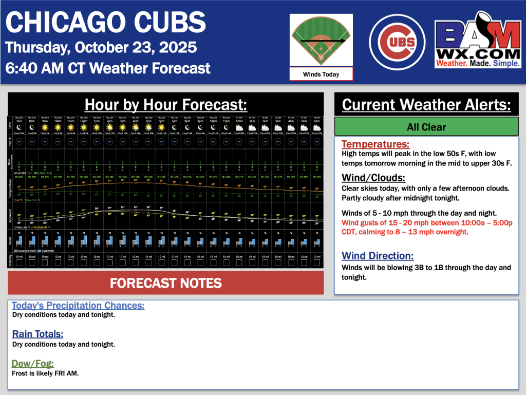 10-23-25 Chicago Cubs Forecast Update.NB. By Noah BeganOn October 23, 2025 Good morning! Here is your latest Chicago Cubs forecast update. Please reach out with any questions! PDF: Chicago Cubs