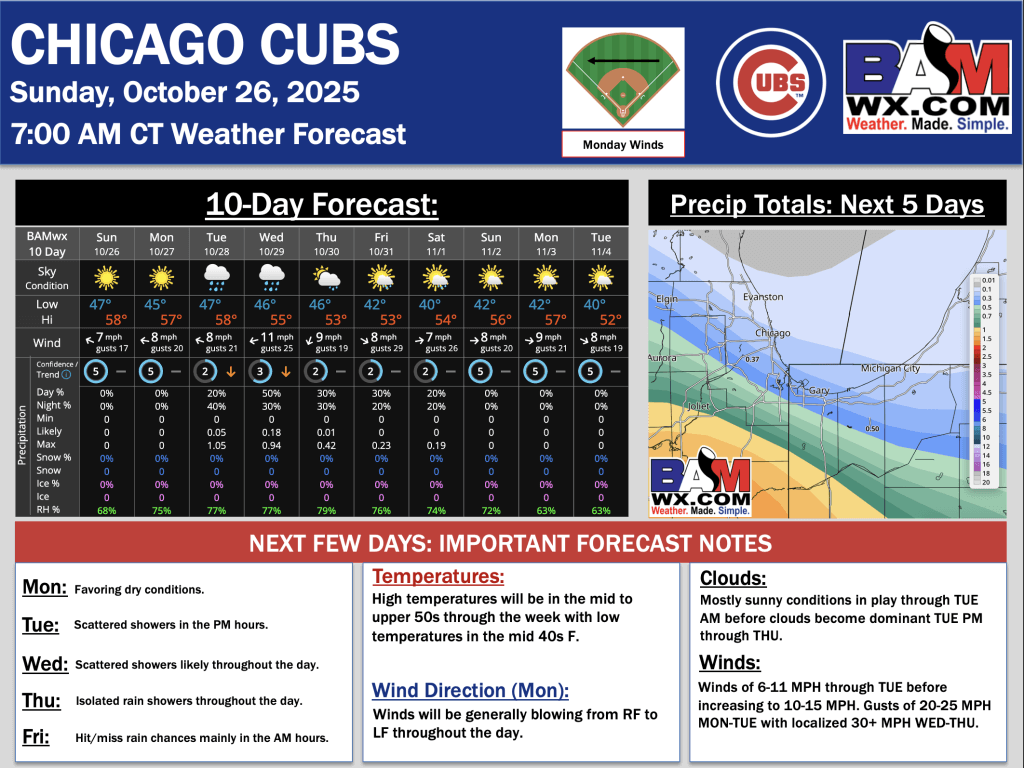 10-26-25 Chicago Cubs Forecast Update.JK. By Jonathan KipperOn October 26, 2025 Good morning! Here is your latest Chicago Cubs forecast update. Please reach out with any questions! PDF: Chicago Cubs