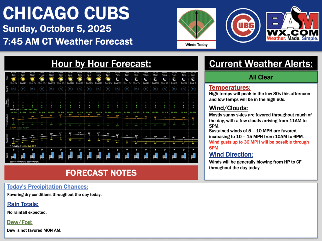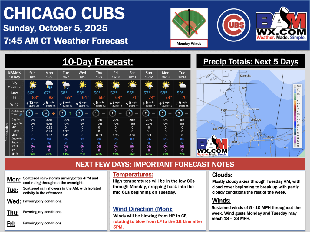 10-5-25 Chicago Cubs Forecast Update.H. By Hope KleitschOn October 5, 2025 Good morning! Here is your latest Chicago Cubs forecast update. Please reach out with any questions! PDF: Chicago Cubs