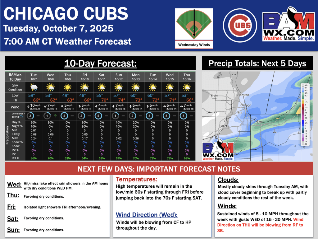 10-7-25 Chicago Cubs Forecast Update.JK. By Jonathan KipperOn October 7, 2025 Good morning! Here is your latest Chicago Cubs forecast update. Please reach out with any questions! PDF: Chicago Cubs