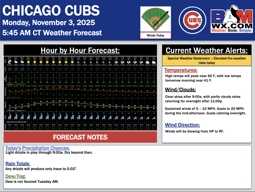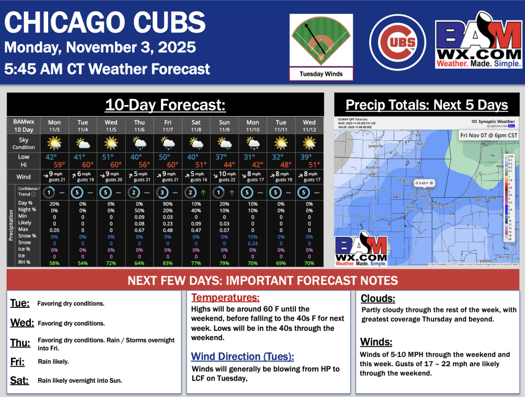 11-03-25 Chicago Cubs Forecast Update.NB. By Noah BeganOn November 3, 2025 Good morning! Here is your latest Chicago Cubs forecast update. Please reach out with any questions! PDF: Chicago Cubs