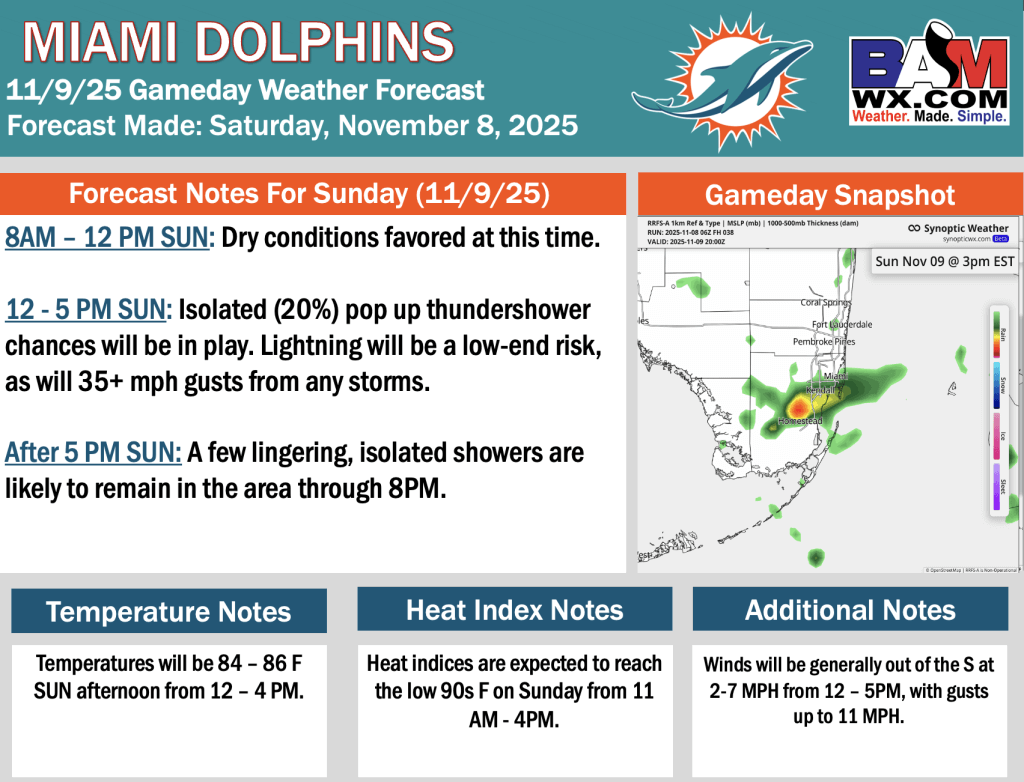 11-08-25 Miami Dolphins Forecast Update.NB. By Noah BeganOn November 8, 2025 Good morning! Here is your latest Miami Dolphins forecast update. Please reach out with any questions! PDF: Miami Dolphins