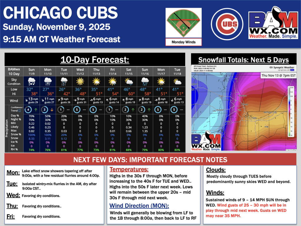11-09-25 Chicago Cubs Forecast Update.NB. By Noah BeganOn November 9, 2025 Good morning! Here is your latest Chicago Cubs forecast update. Please reach out with any questions! PDF: Chicago Cubs