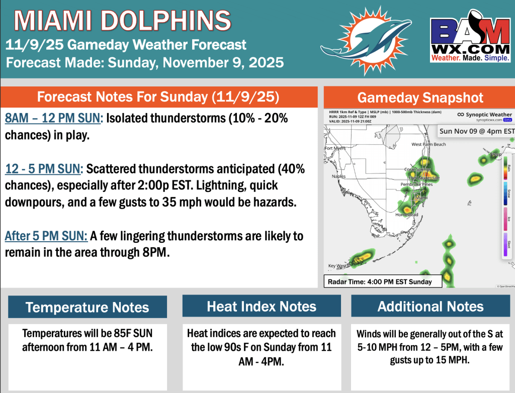 11-09-25 Miami Dolphins Forecast Update.NB. By Noah BeganOn November 9, 2025 Good morning! Here is your latest Miami Dolphins forecast update. Please reach out with any questions! PDF: Miami Dolphins