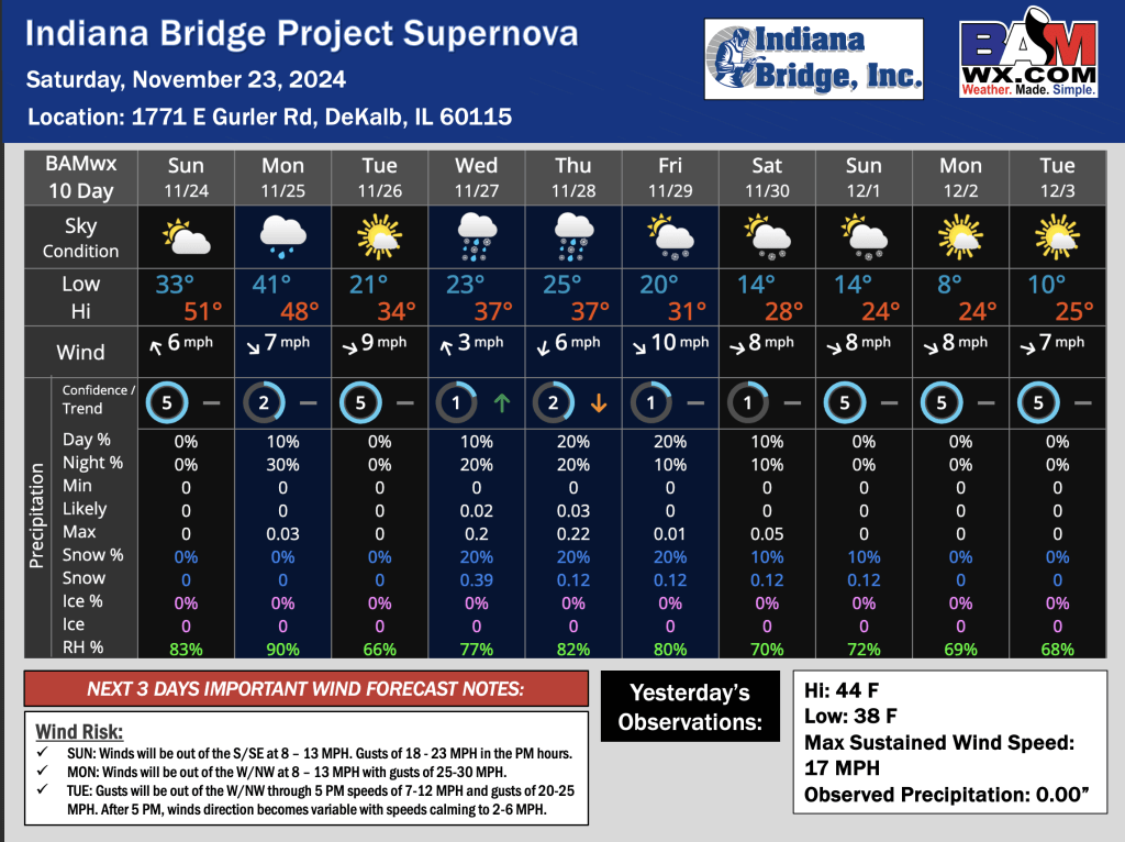 11-23-24 Indiana Bridge Forecast Update. JK. By Jonathan KipperOn November 23, 2024 Good Morning! Here is your latest Indiana Bridge forecast update! Please reach out if you have any questions!
