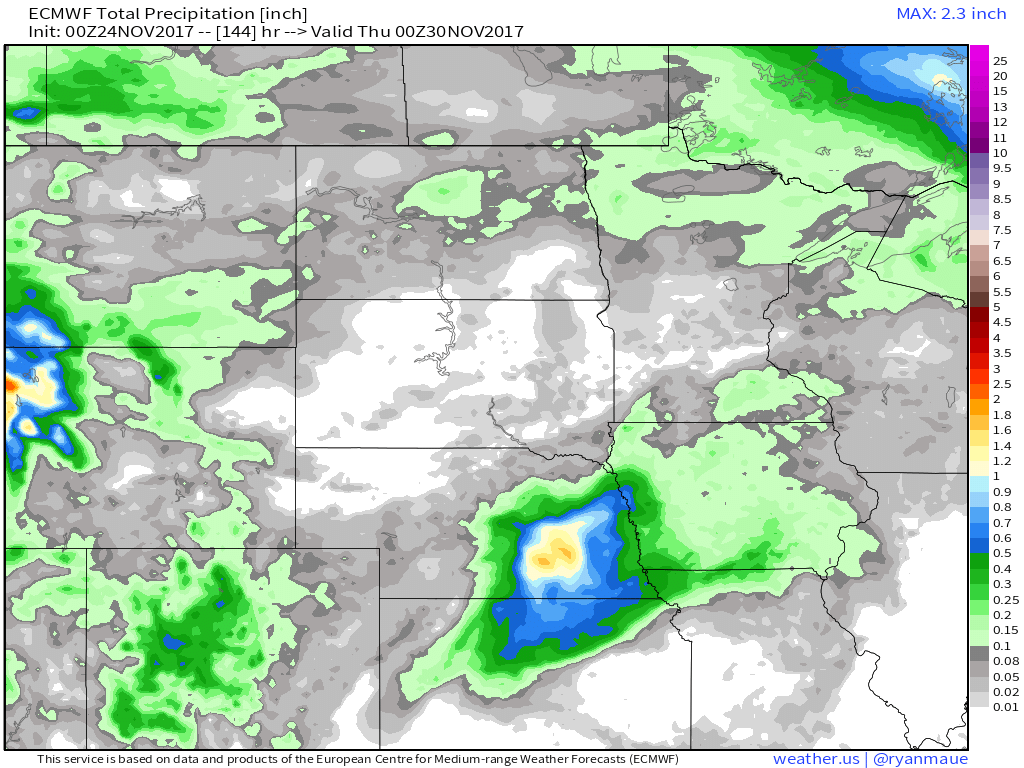 11-24-17 Northern Plains Update: Mainly dry weekend expected, colder too! E. By Chief Meteorologist Michael ClarkOn November 24, 2017 Today’s Video (4 min) Wind advisories up in the Dakotas today. Total precipitation through next week.