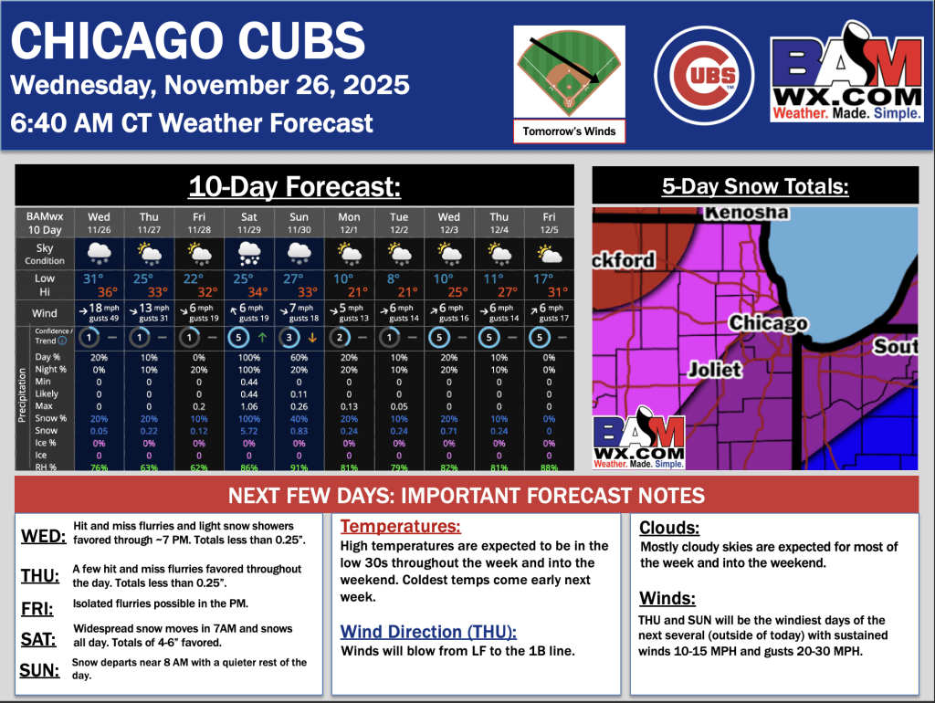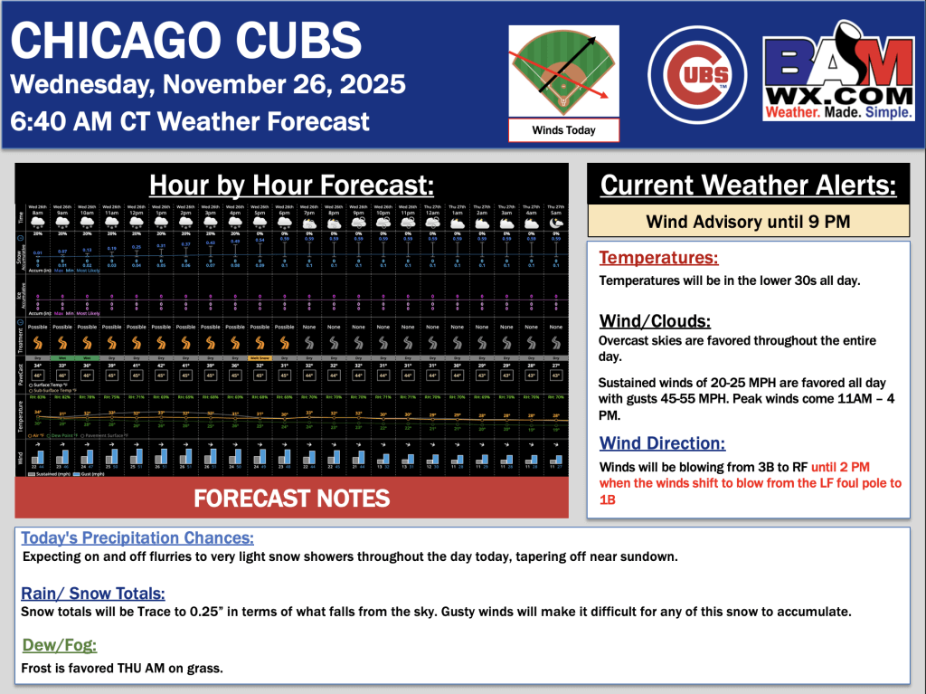 11-26-25 Chicago Cubs Forecast.V. By Vince BryanOn November 26, 2025 Good morning! Here is your latest Chicago Cubs forecast update. PDF: Chicago Cubs