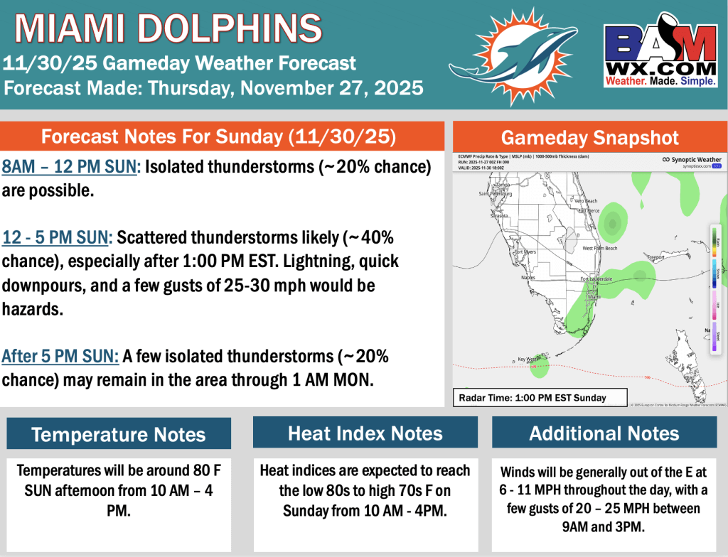 11-27-25 Miami Dolphins Forecast Update.S. By Samantha LangOn November 27, 2025 Good afternoon! Here is your latest Miami Dolphins forecast update. Please reach out with any questions! PDF: Miami Dolphins