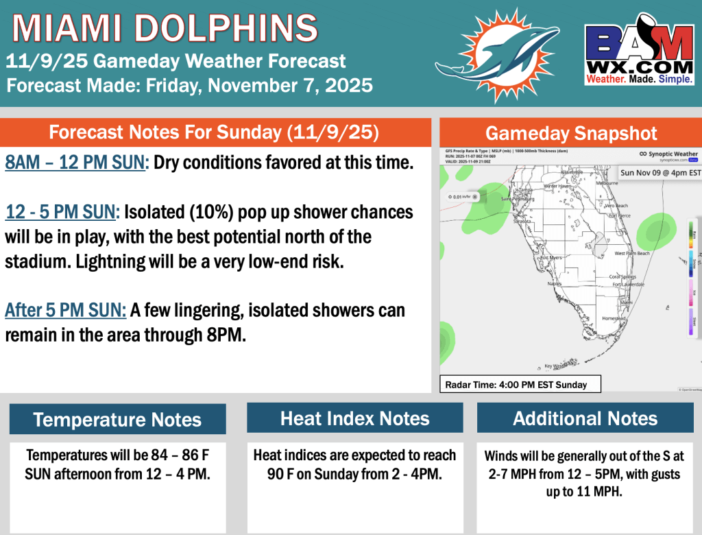 11-7-25 Miami Dolphins Forecast Update.H. By Hope KleitschOn November 7, 2025 Good morning! Here is your latest Miami Dolphins forecast update. Please reach out with any questions! PDF: Miami Dolphins
