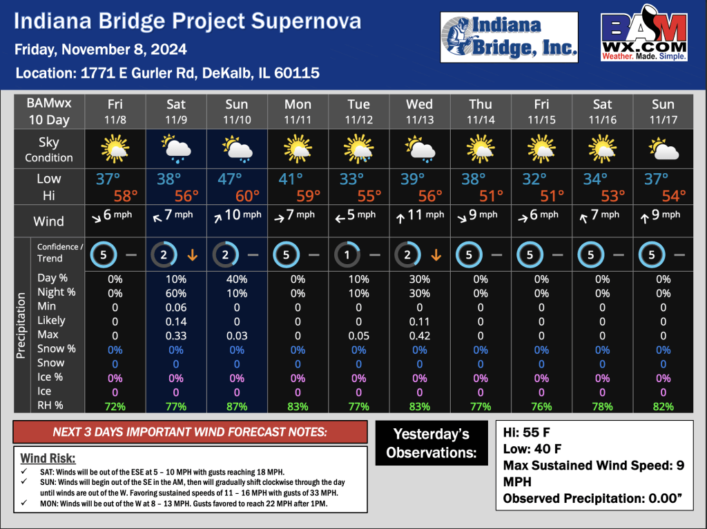 11-8-24 Indiana Bridge Forecast Update.A. By Alyssa ElliottOn November 8, 2024 Good Morning! Here is your latest Indiana Bridge forecast update! Please reach out if you have any questions!