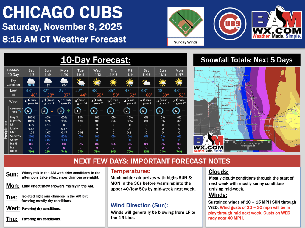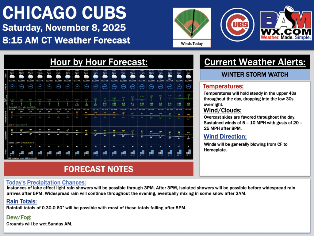 11-8-25 Chicago Cubs Forecast Update.H. By Hope KleitschOn November 8, 2025 Good morning! Here is your latest Chicago Cubs forecast update. Please reach out with any questions! PDF: Chicago Cubs