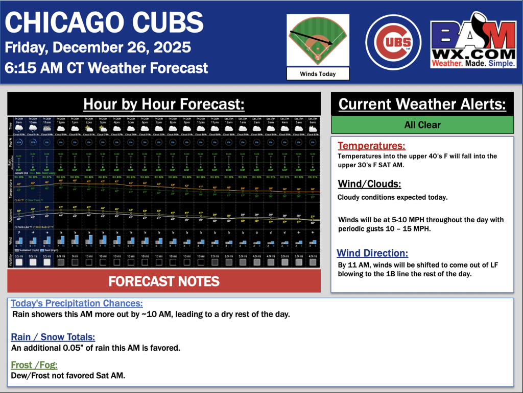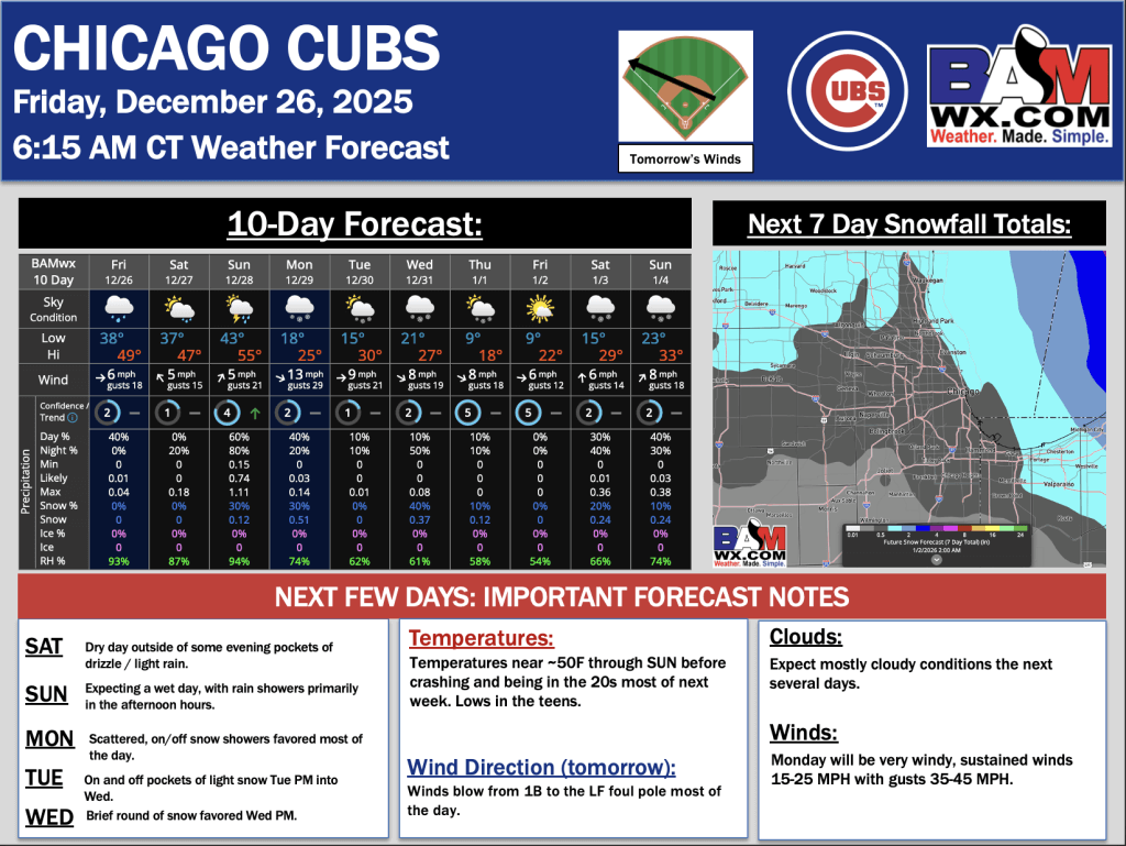 12-26-25 Chicago Cubs Forecast.V. By Vince BryanOn December 26, 2025 Good morning! Here is your latest Chicago Cubs forecast. PDF: Chicago Cubs
