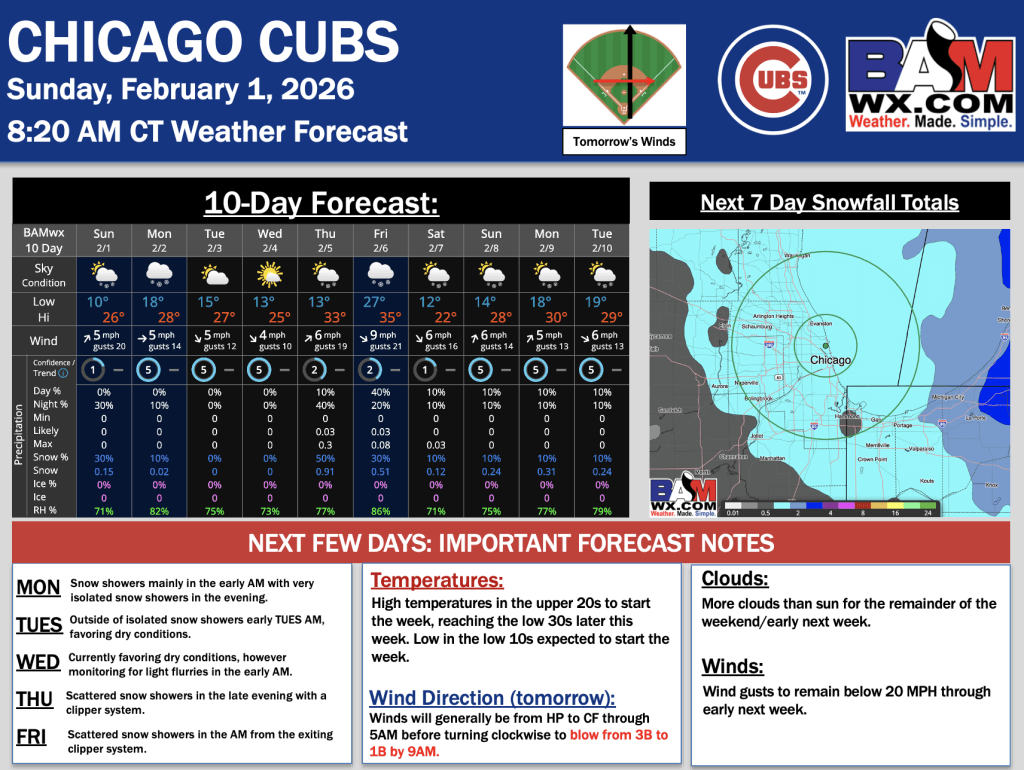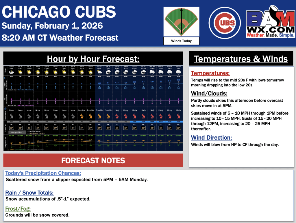 2-1-26 Chicago Cubs Forecast Update.S. By Samantha LangOn February 1, 2026 Good morning! Here is your latest Chicago Cubs forecast update. Please reach out with any questions! PDF: Chicago Cubs