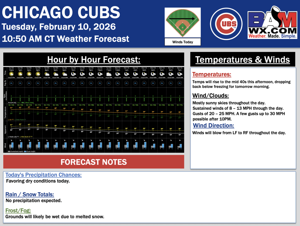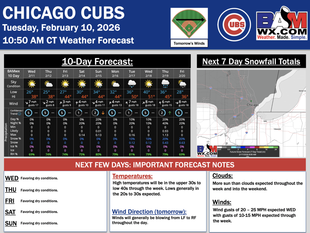 2-10-26 Chicago Cubs Forecast Update.H. By Hope KleitschOn February 10, 2026 Good morning! Here is your latest Chicago Cubs forecast update. Please reach out with any questions! PDF: Chicago Cubs